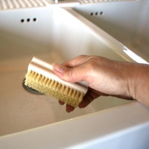 De basis is gemaakt van onbehandeld beukenhout wat heel goed tegen blootstelling aan water kan. Ook afwasborstels en schrobborstels worden daar van gemaakt. Na veelvuldig gebruik kan het hout wat verkleuren, maar het blijft stevig.