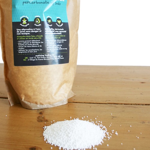 Natriumpercarbonaat noemt men ook wel vaste Waterstofperoxyde en het is een bleekmiddel en vlekverwijderaar die niet of nauwelijks belastend is voor het milieu, in tegenstelling tot bleekwater of chloor.